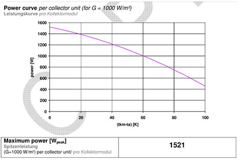 Based on Test method according to DIN EN 12975-2:2006 chapter 6.3, our FP-GV 2.15 collector had made the power of 1521.