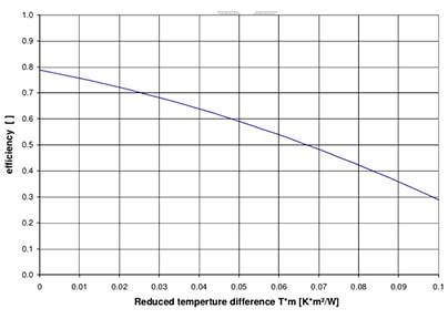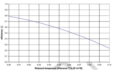 Efficiency curve presents a visible result of the working efficiency of collector that is test by solar Key-Mark EN12975-2 2006 basis.