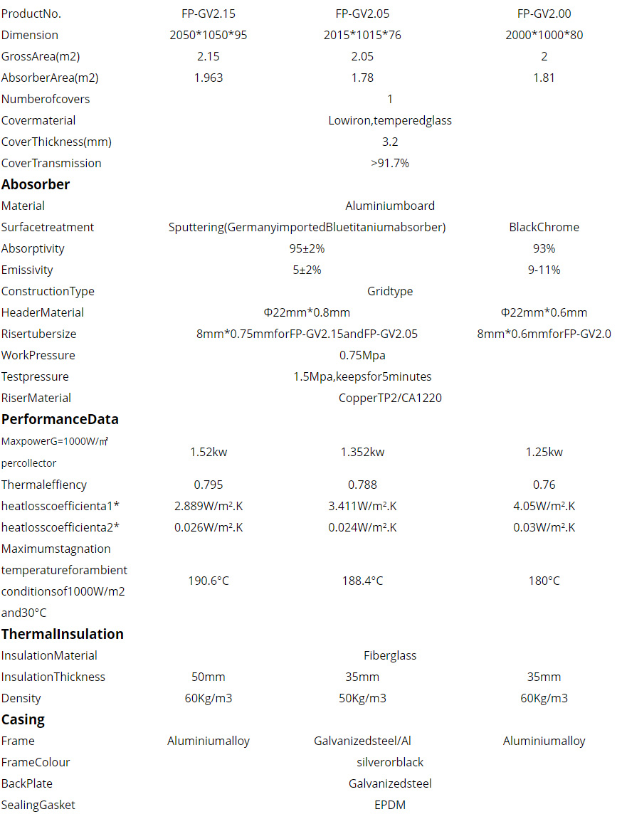 Solar Flat Plate Collector Specification